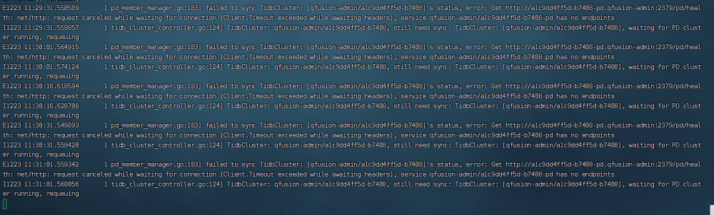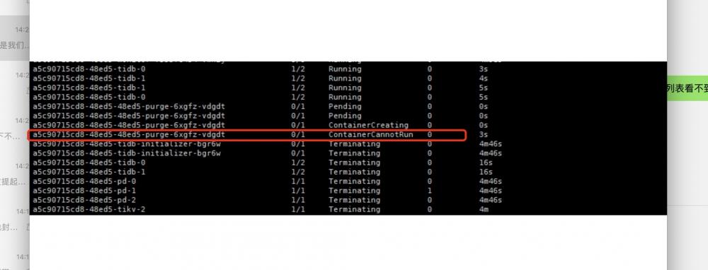 2.后经和开发商进行沟通他们,自定义了CRD用于管理tidb集群的资源ticluster后经排查发现tidb集群初始化失败,直接删除了整个集群,后和开发商把该逻辑注释可以正常创建集群。该问题解决。