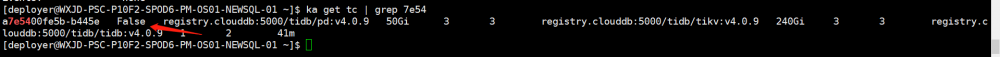 1.经过后台在K8S集群中看下tc的状态发现是flase,tidb的pod期望是2目前是1,需要查看该命名空间下的pod。