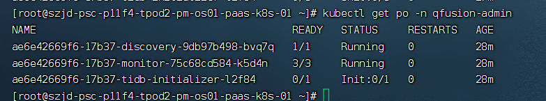 5.后来客户反馈init的时候时间很长,经排查发现pd、tikv、tidb都还没有启动完成,只有都启动完成才能做初始化来,需要稍等一下。同时建议开发商在执行初始化job的时候添加一个逻辑判断,减少前端显示的时间。