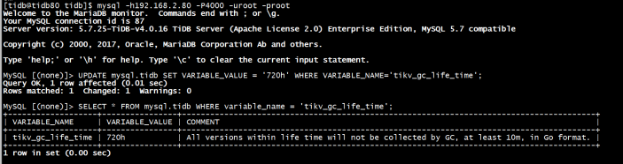 • 重启 tidb 节点,确保 tidb 无业务会话连接。