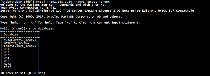 修改/tidb/backup/mysql_exp_grants_out_xxxxxxxx.sql cp /tidb/backup/mysql_exp_grants_out_xxxxxxxx.sql mysql_exp_grants_out_20220905.sql.bak vi mysql_exp_grants_out_xxxxxxxx.sql 修改不导入root用户 mysql -h192.168.2.80 -P4001 -uroot -p source /tidb/backup/mysql_exp_grants_out_xxxxxxxx.sql5) 验证下游已恢复数据和用户权限