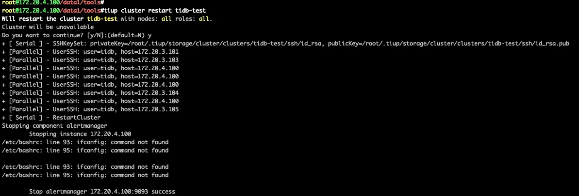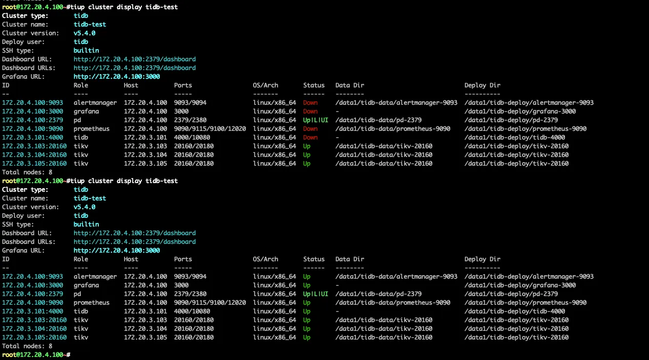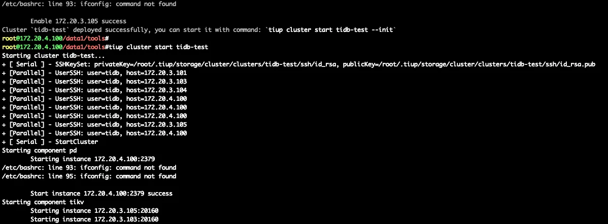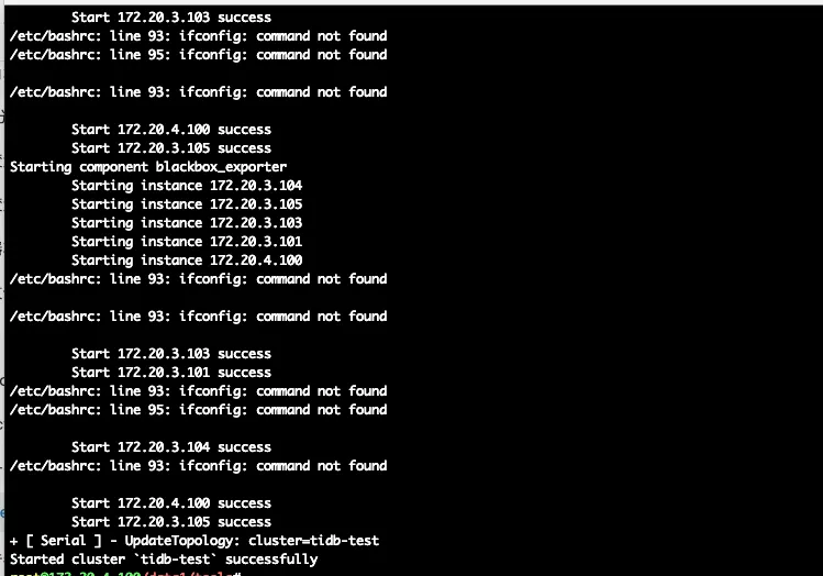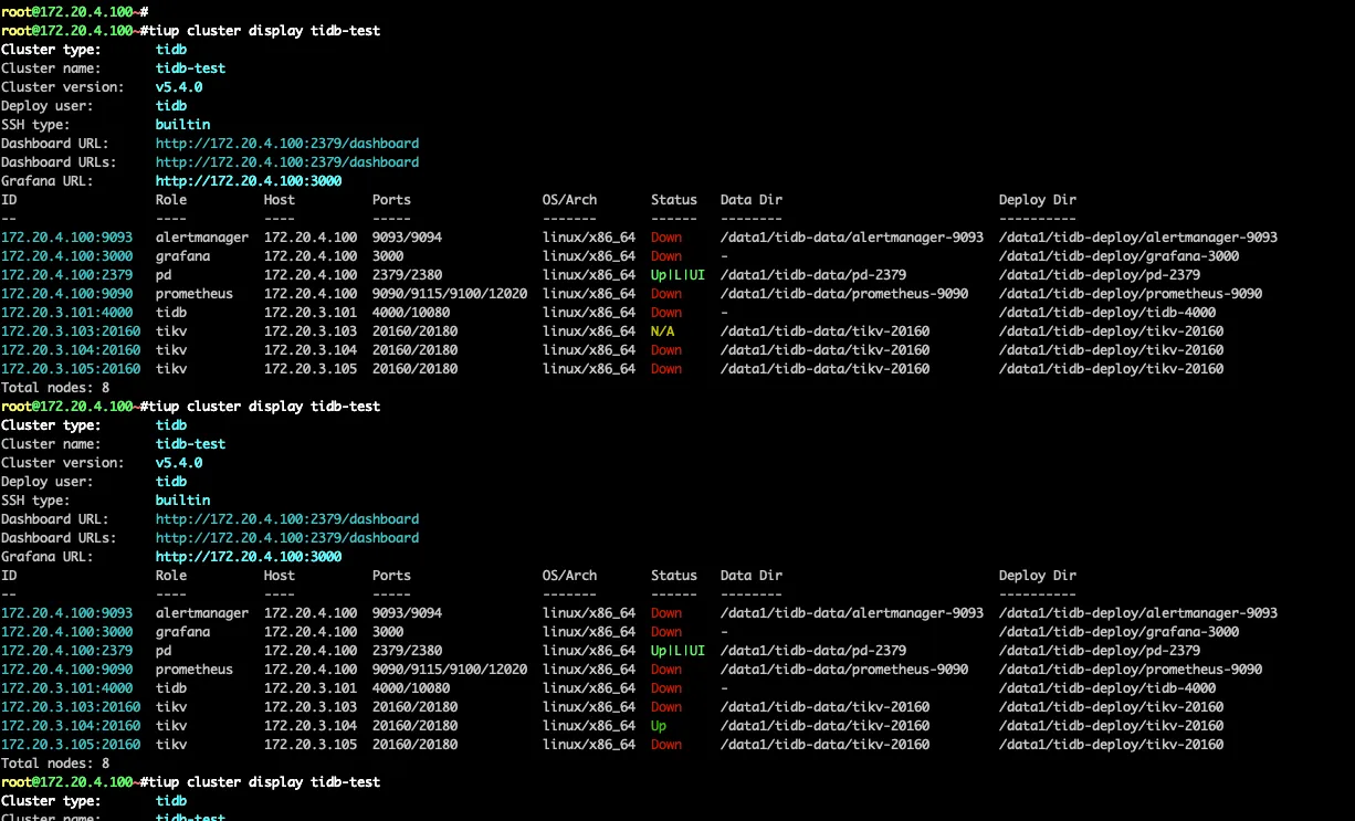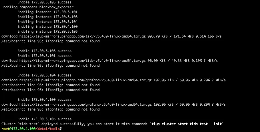 tiup cluster deploy tidb-test v5.4.0 ./topology.yaml --user root