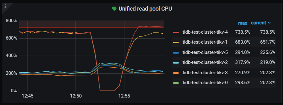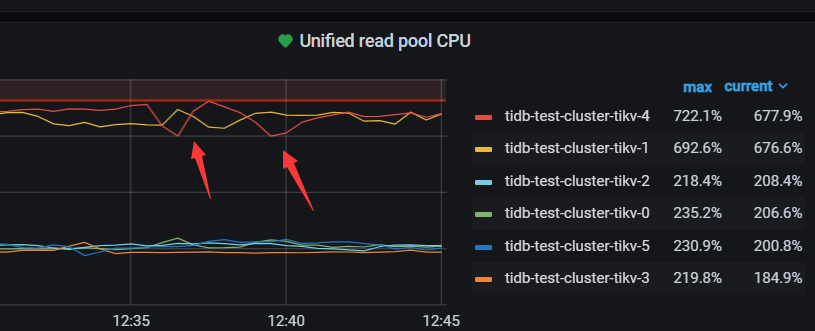 检查uinified read pool设置,发现tikv-1 tikv-4的max 为76 其他为12