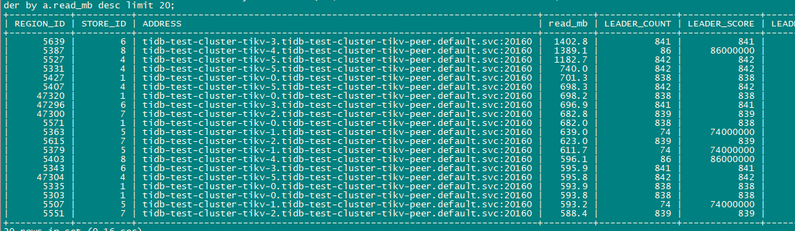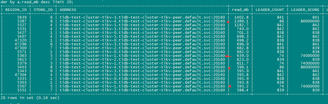 检查read 的热点region, 看上去2个tikv 似乎并比重并不多,流量也是最低的