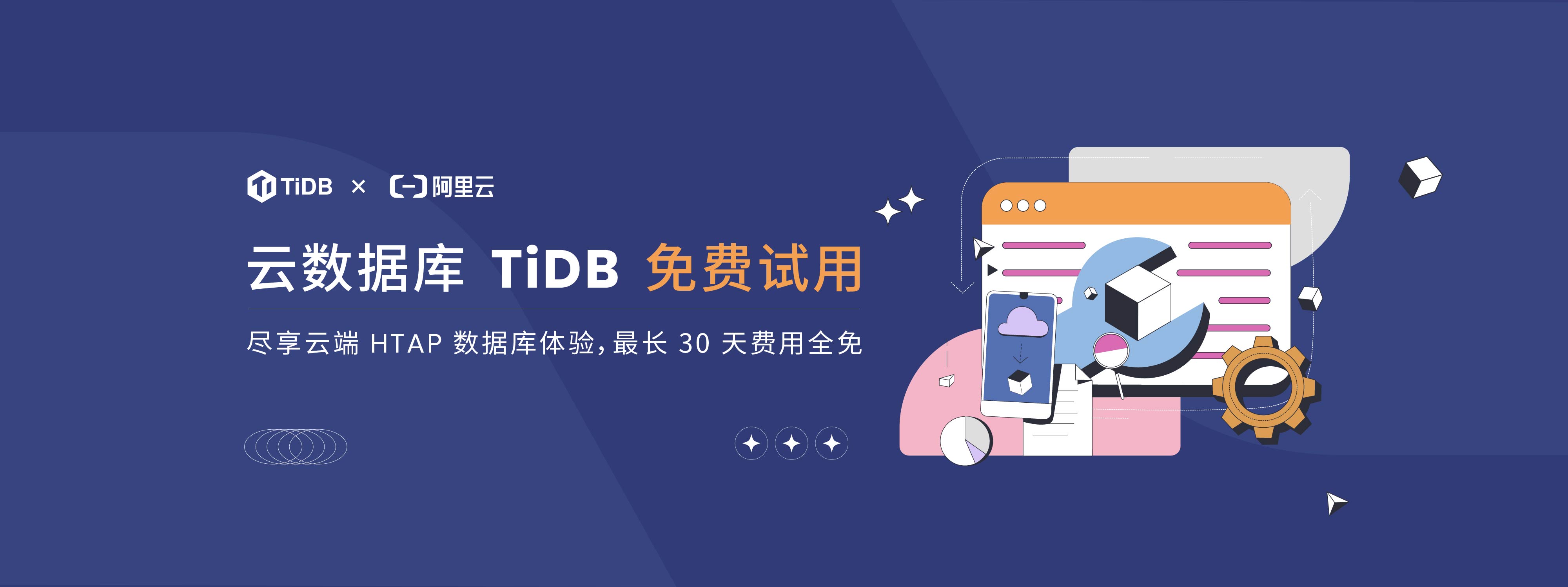 为了让更多企业用户无缝体验云数据库 TiDB 的核心能力,发掘云端 HTAP 数据库在业务场景的无限潜力,PingCAP 携手阿里云在兔年新春推出免费试用活动,开放少量免费试用名额: