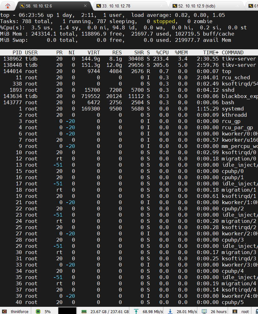 印象里看文档的时候有一些配置应该是需要改的,因为我把俩tikv实例放一个服务器上了 ![]()