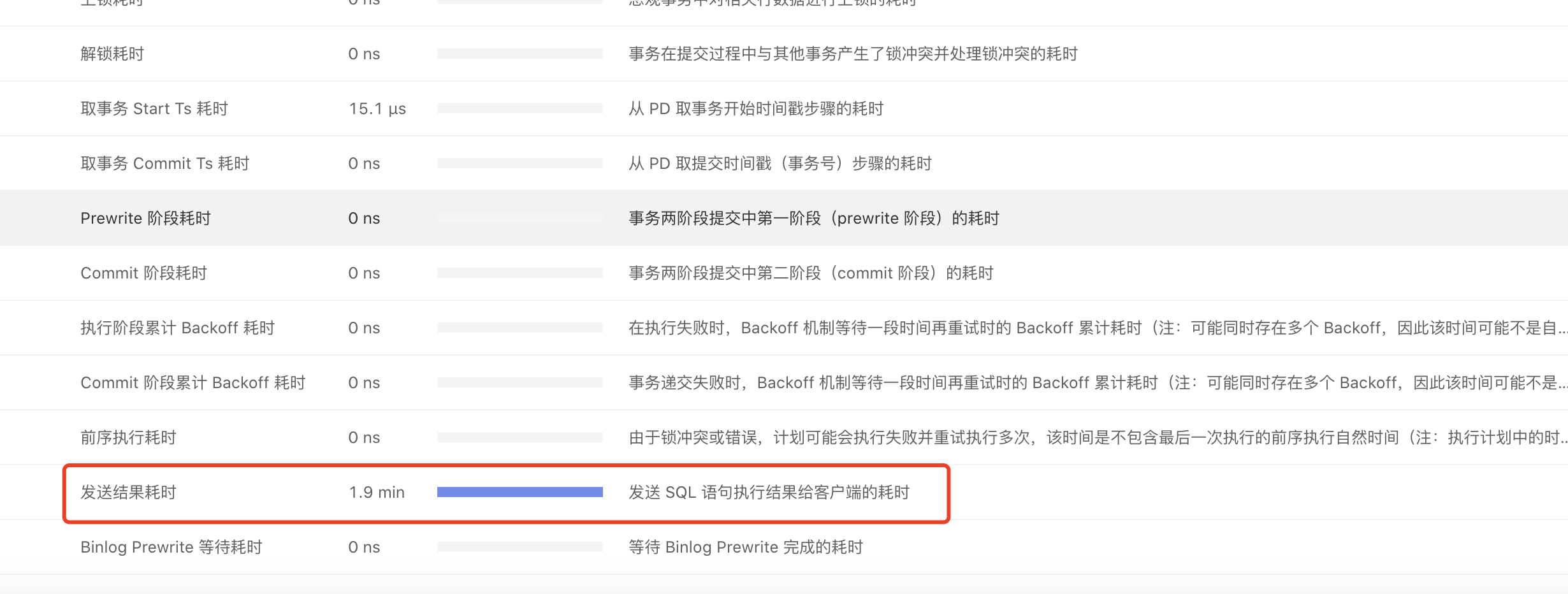 通过DataX从TiDB读取数据时,出现慢查询,慢查询的SQL耗时是“发送结果耗时”,耗时是1.9分钟,这个“发送结果耗时”是指发送 SQL 语句执行结果给客户端的耗时,这里的客户端指的是谁?难道是TiDB将结果发送到DataX的耗时?这个问题该如何排查?