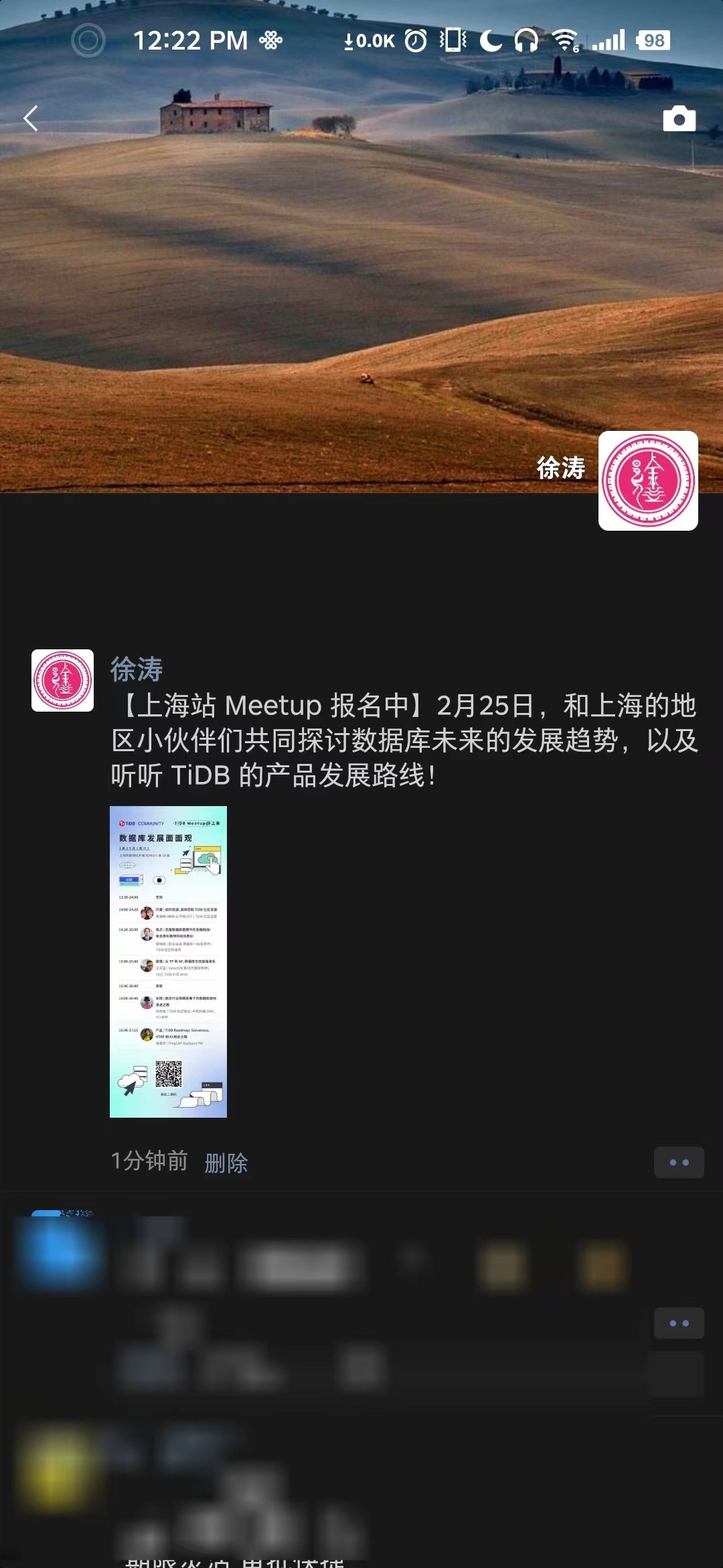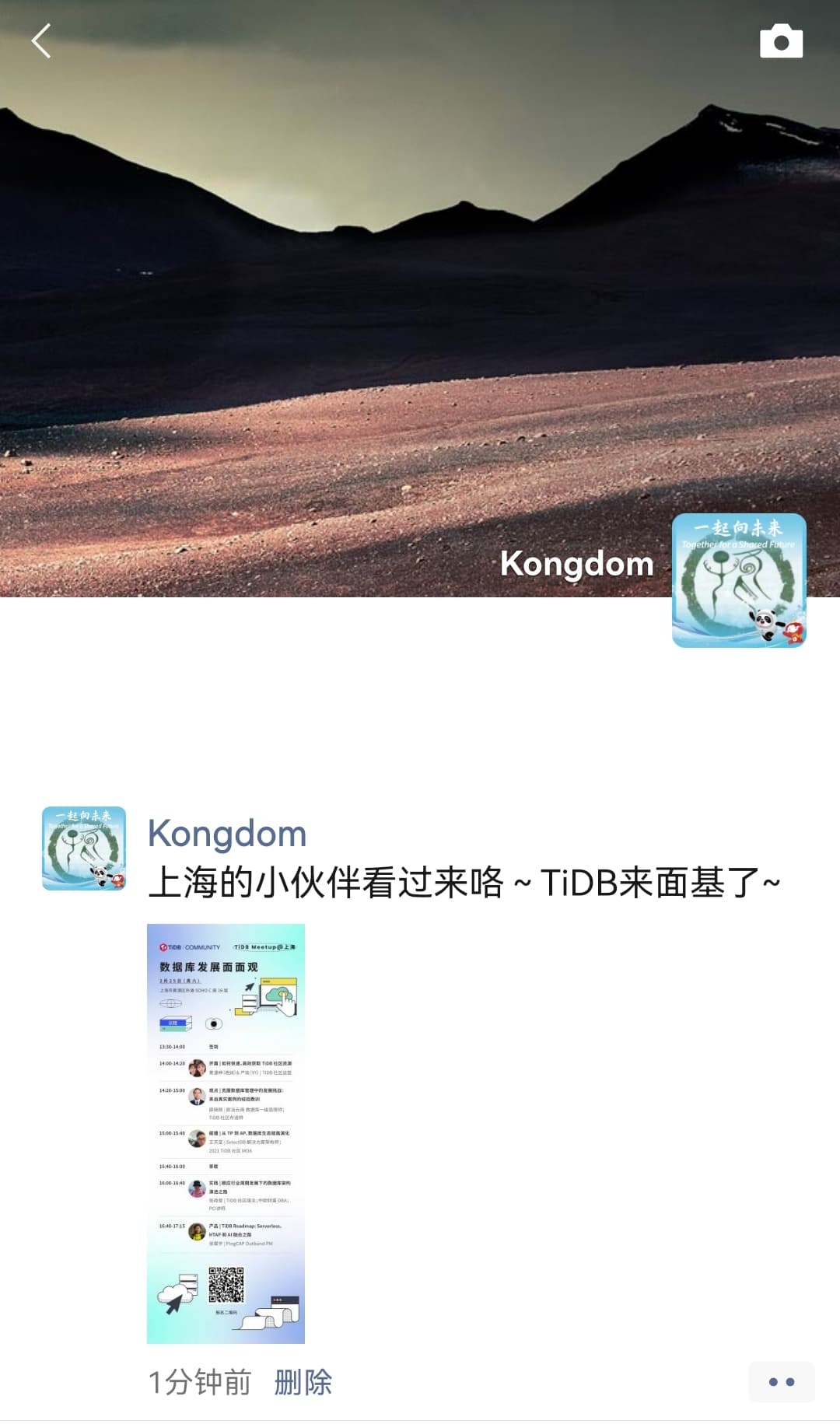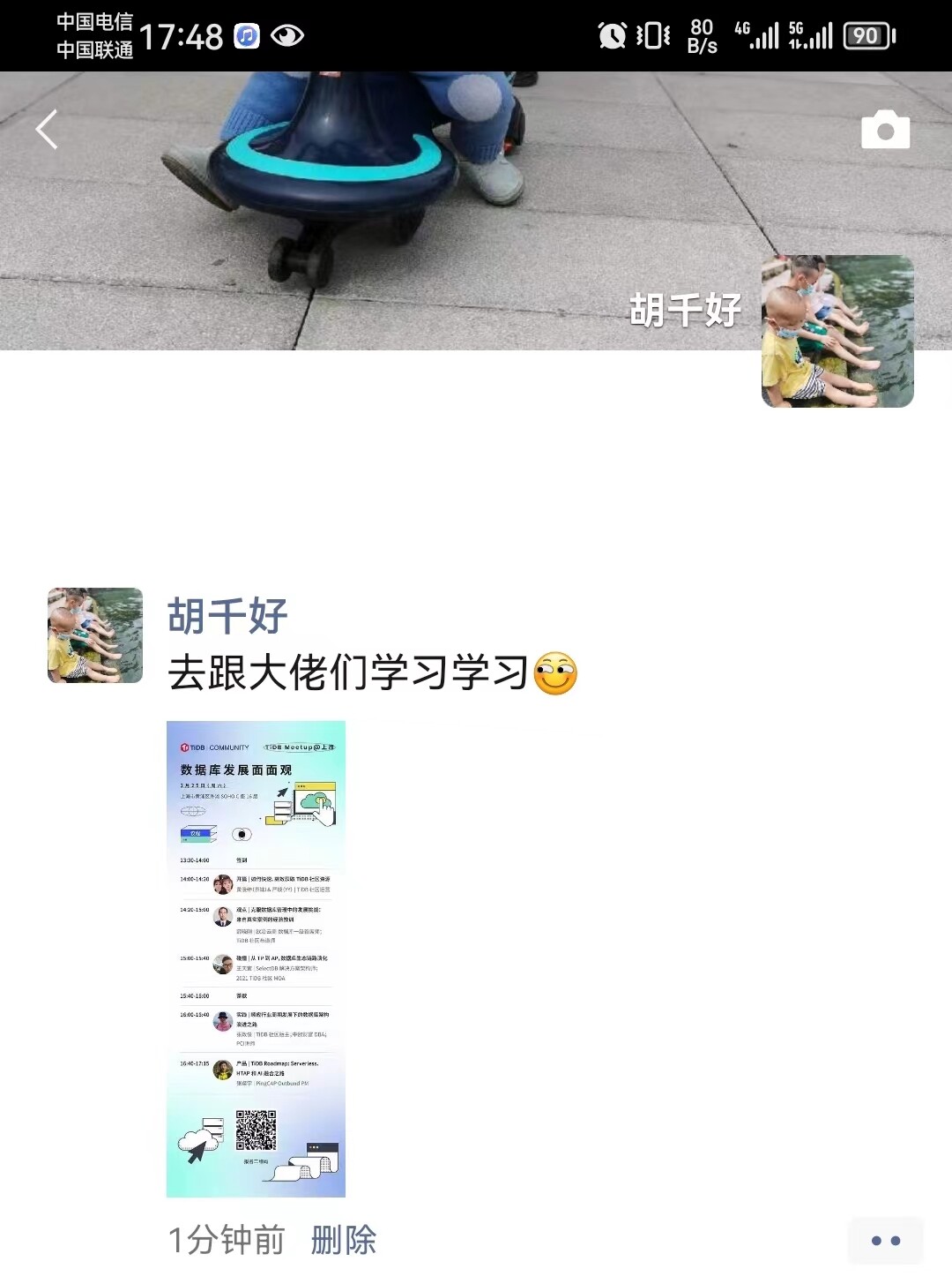最近很多热文在朋友圈刷屏转发,很多标题党观点让大家不断热议,在看到很多小伙伴各抒己见的同时,也给了我们上海地区的组织者薛小刚 @xuexiaogang 老师一个很好的 idea,不妨组个局,听听上海当地的小伙伴大家是怎么看待这个问题。在此基础之上,我们邀请到了 TiDB 社区版主,中欧财富 DBA 张政俊老师 @HHHHHHULK 、以及社区的老朋友,来自 SelectDB 的解决方案架构师 王天宜老师 @懂的都懂 来聊聊从过去到未来,数据库生态的链路演化,以及在顺应行业周期下的 TiDB 架构演进之路,本期活动还有来自 PingCAP 的 Outbund PM 张粲宇老师将和大家分享 TiDB Roadmap,趁此机会也希望和大家一起聊聊 Serverless、与 AI 融合的 TiDB 让大家期待的发展。