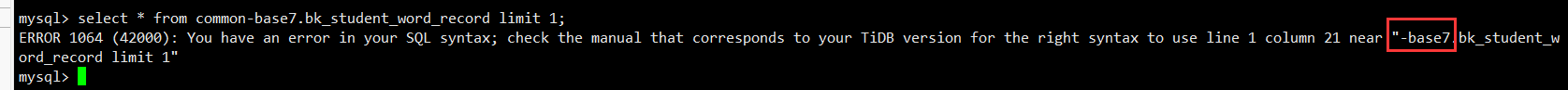 报错日志能 复制出来看下。 我这在库级别也有中划线的问题。 db-name.。 无法实现 select * from db-name.table_name; 的查询。