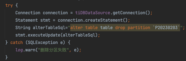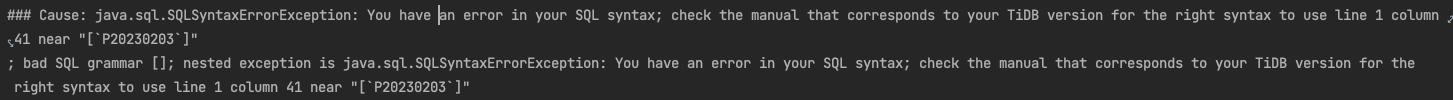 使用mybatis删除表中的分区时出现了java.sql.SQLException: json: cannot unmarshal string into Go value of type string的异常,这种情况要如何修改sql呢