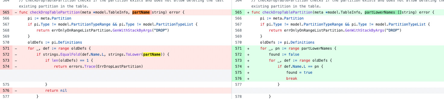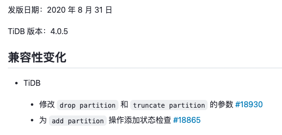 看了一下mr的记录ddl: change drop partition and truncate partition's job args to support multi partition id array (#18419) by ti-srebot · Pull Request #18930 · pingcap/tidb · GitHub name确实有修改,但不知道是否就是这个原因导致的