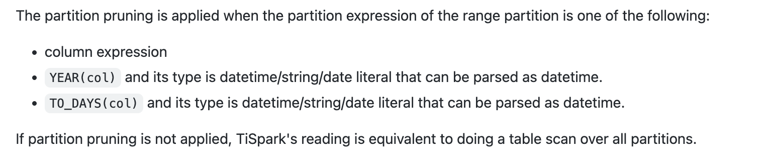 tispark 当前分区表能走分区裁剪的非常少,需要 tispark 支持的,最好有研发能接收到你的这个请求。