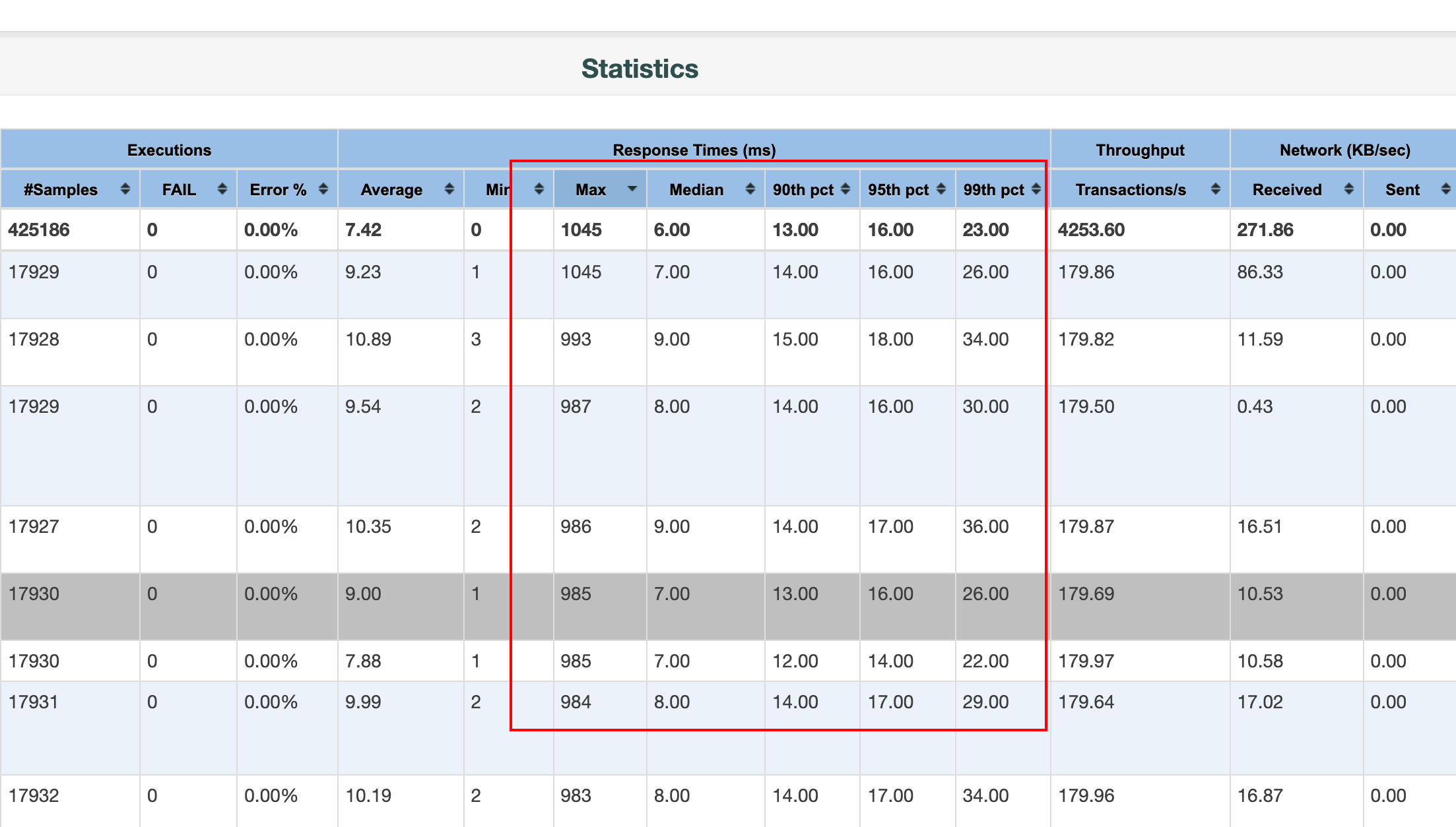 【 TiDB 使用环境】测试/ 【 TiDB 版本】v650 【复现路径】jmeter自定义语句压测tidb 【遇到的问题:问题现象及影响】 jmeter自定义语句压测tidb,为什么max latency会比较大?如图所示; 是否可能是初始化连接时,连接耗时?对jmeter不太了解,没有搜索到相关答案 【资源配置】 【附件:截图/日志/监控】