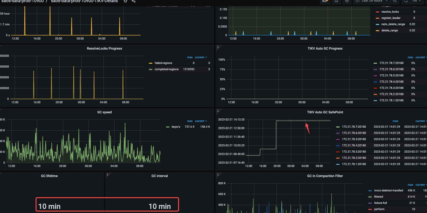 GC参数就是10分钟,compact没关闭 ,看着是昨天下午卡住了,那会进行了一些大表的drop操作