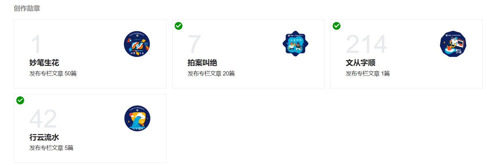 - 荣誉徽章:发布专栏文章还可以获得专属【创作勋章】