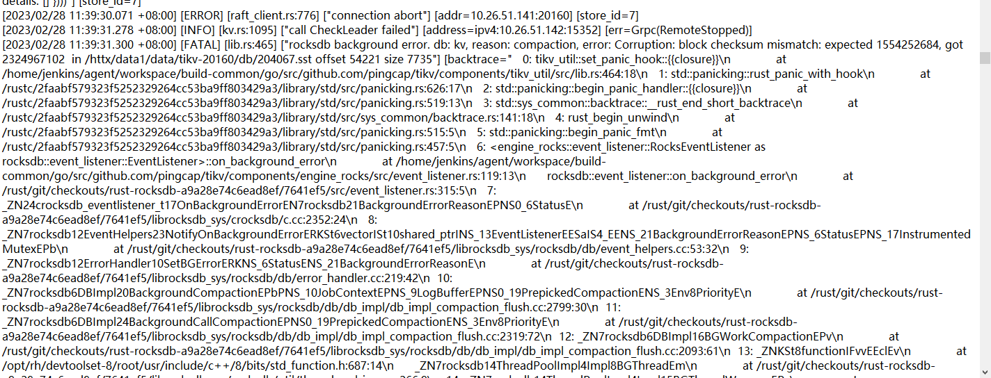[FATAL] [server.rs:407] [“panic_mark_file /httx/data1/data/tikv-20160/panic_mark_file exists, there must be something wrong with the db. Do not remove the panic_mark_file and force the TiKV node to restar