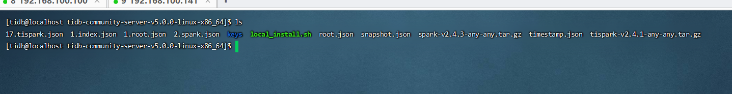 然后下载了离线镜像,tiup mirror clone tidb-community-server-v5.0.0-linux-x86_64 v5.0.0 --os=linux --arch=x86_64。并压缩后放到目标服务器,并解压。同时下载了最新的root.json,timestamp.json。