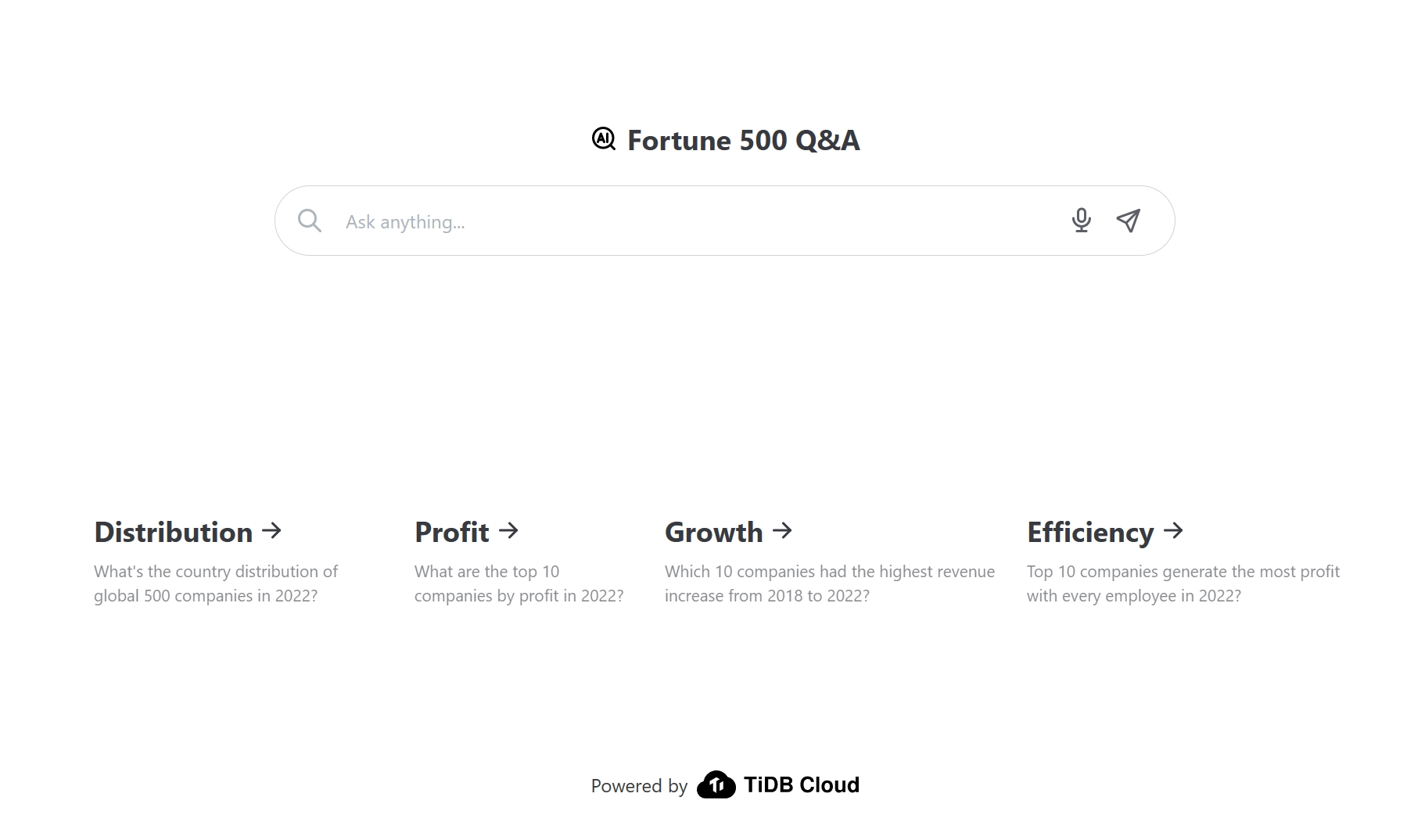 3、Fortune 500 Q&A=TiDB Cloud + vercel