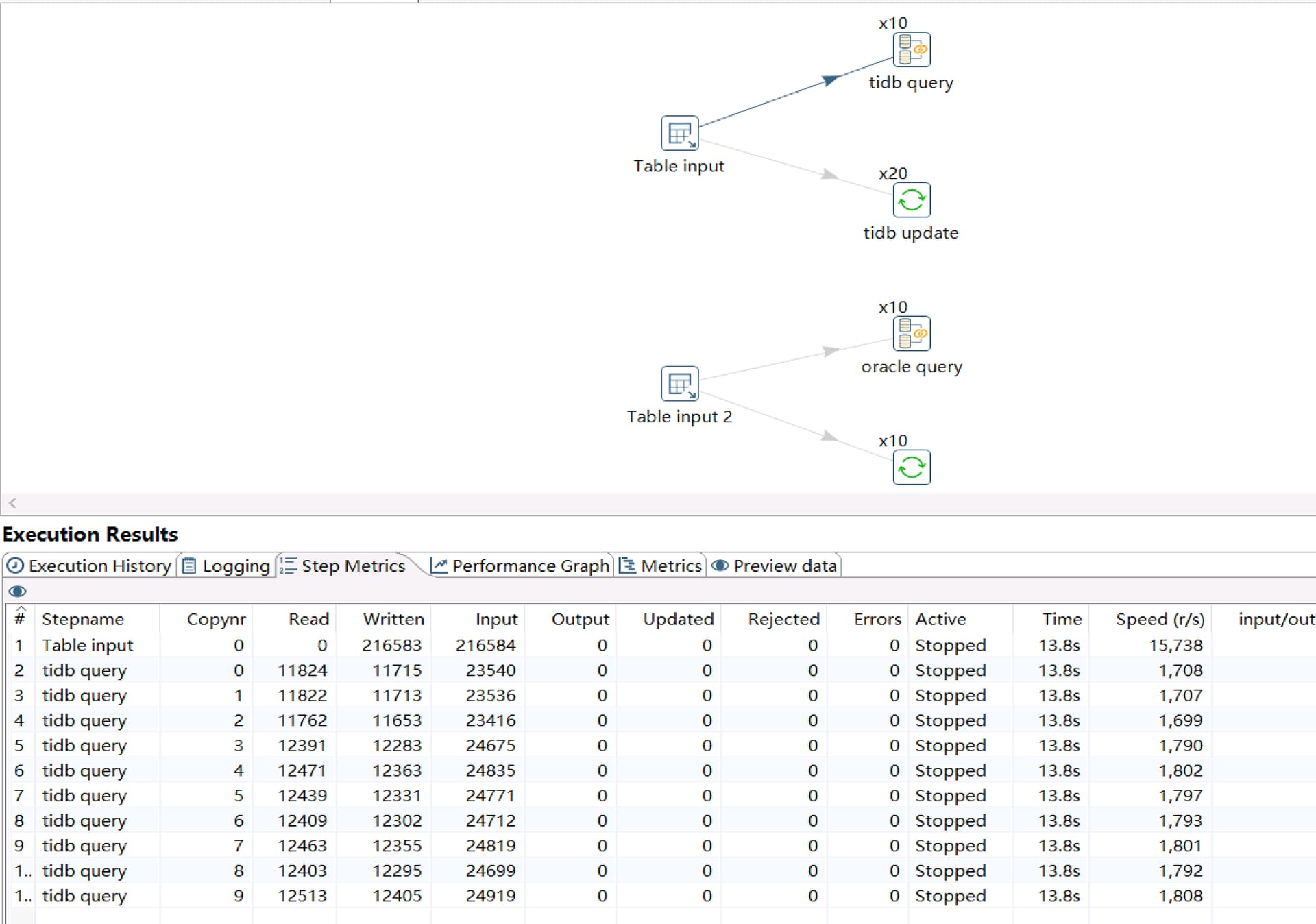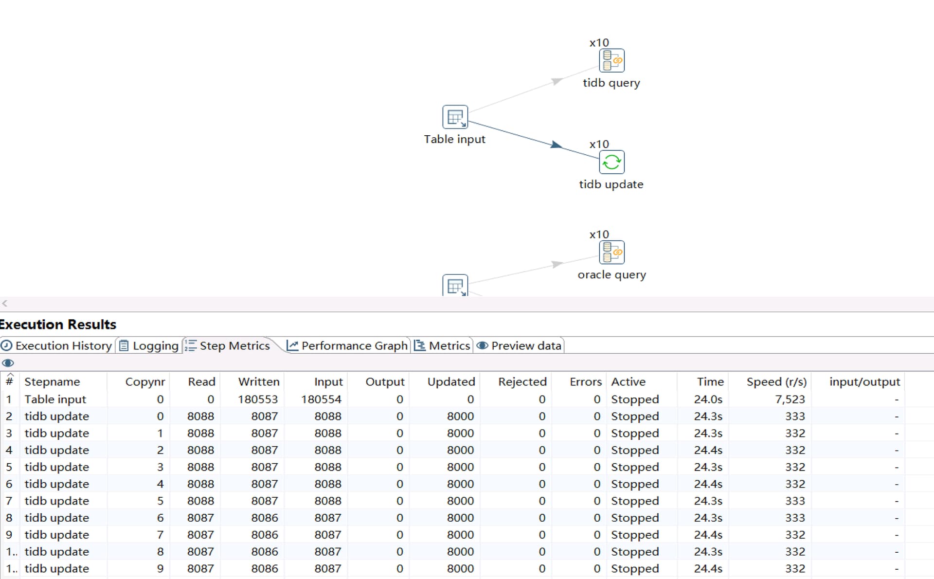 tidb链接加到10之后总速度接近1.8w/s