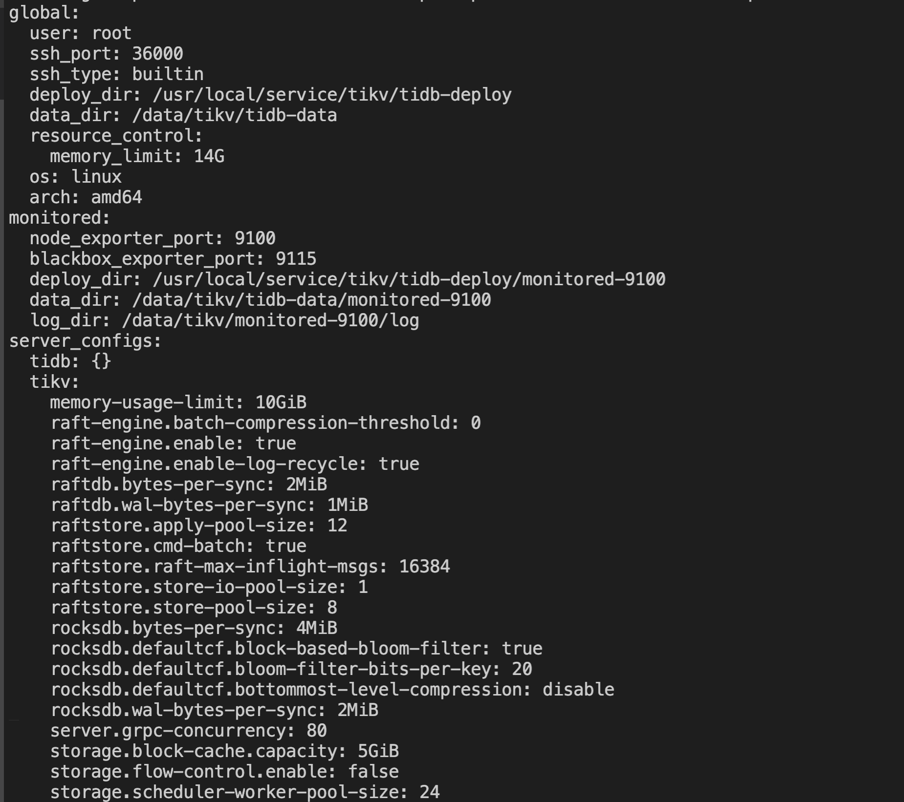 pd、tikv server 混部,3*[48 core 128GB 内存 3.75TB *1]