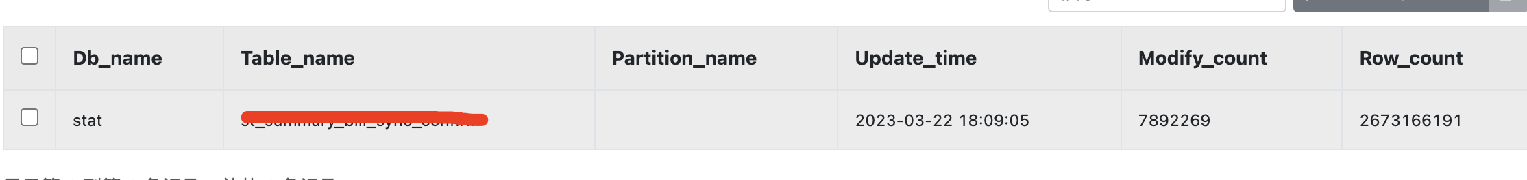 show stats_meta where table_name like ‘%bk_student_exam_chunk%’;