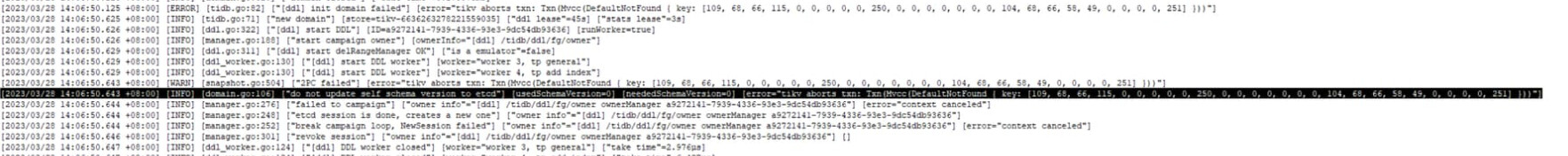 Error 1105: tikv aborts txn: Txn(Mvcc(DefaultNotFound { key: [109, 68, 66, 58, 50, 57, 50, 52, 51, 255, 0, 0, 0, 0, 0, 0, 0, 0, 247, 0, 0, 0, 0, 0, 0, 0, 104, 84, 97, 98, 108, 101, 58, 50, 57, 255, 50, 54, 56, 0, 0, 0, 0, 0, 250]