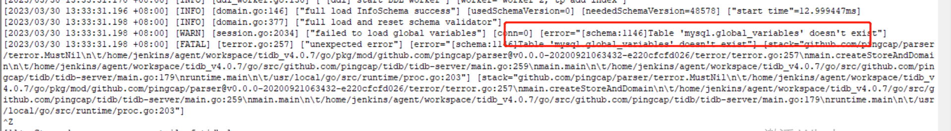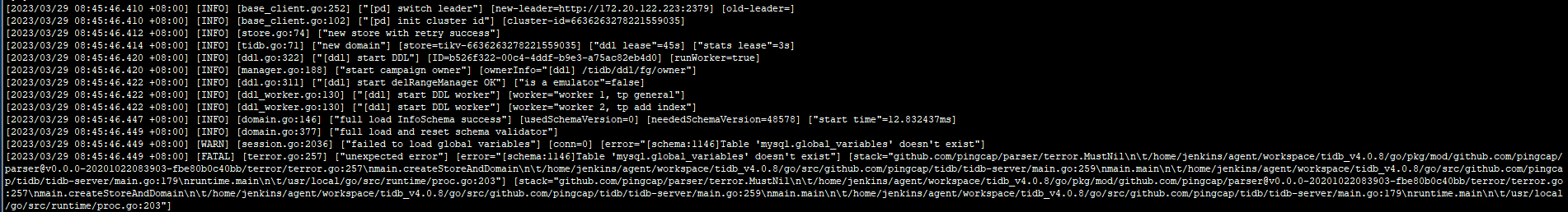 且执行create /drop 直接卡顿无法,重启tidb-server或新增节点无法启动,启动提示: