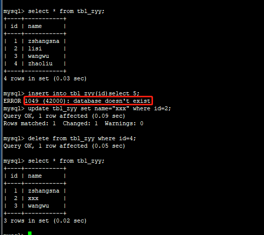 对表写入提示数据库不存在,只能做select/update/delete无法insert