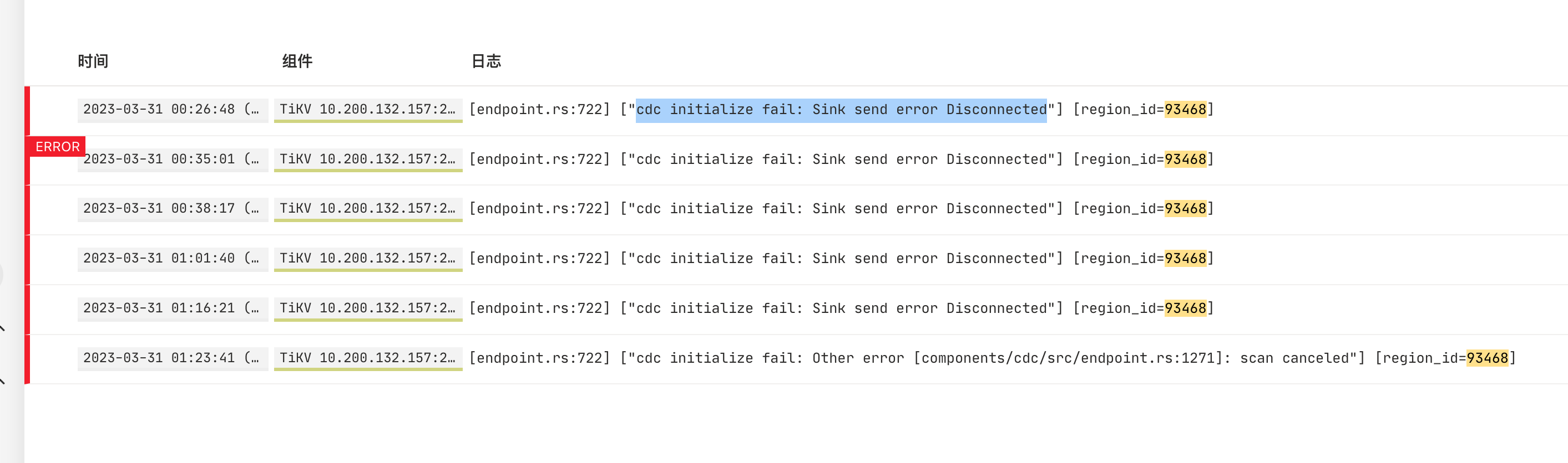 没有报错,我们没有使用 ticdc,使用的是 client-java 获取的 cdc 事件。