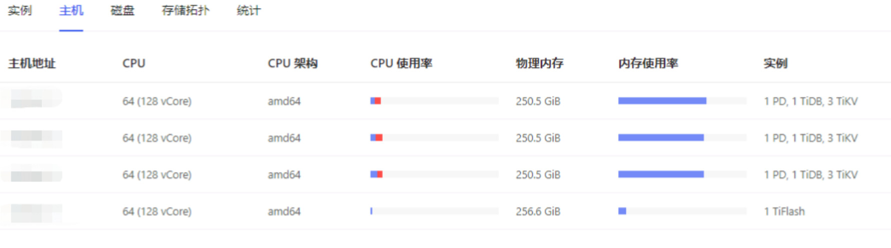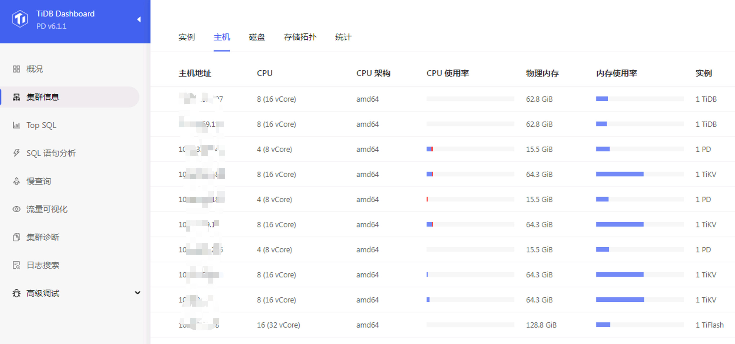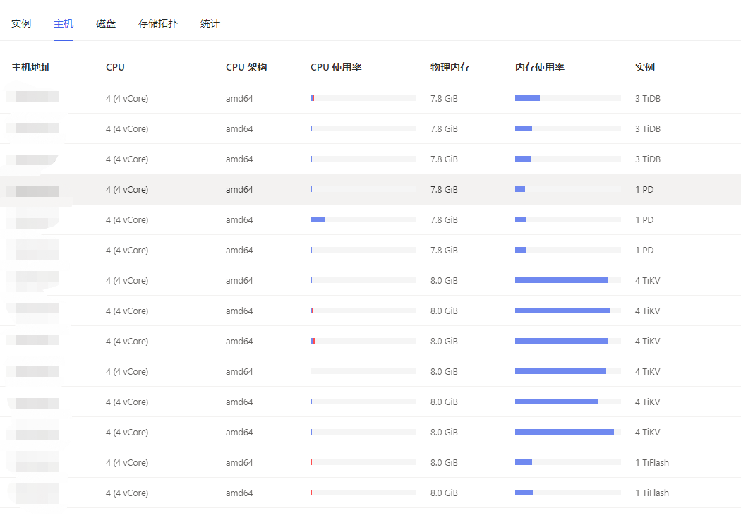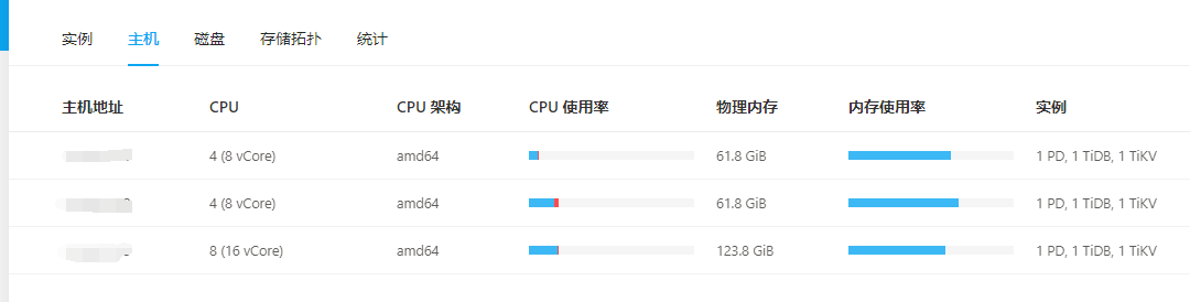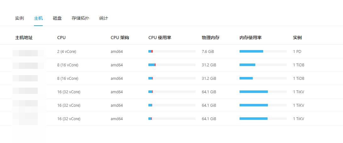 TiDB Dashboard ——>集群信息 (Cluster Info) ——>主机(Hosts)