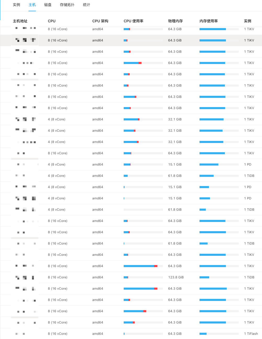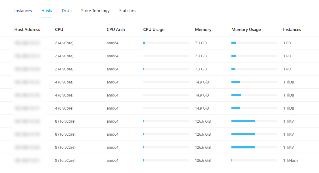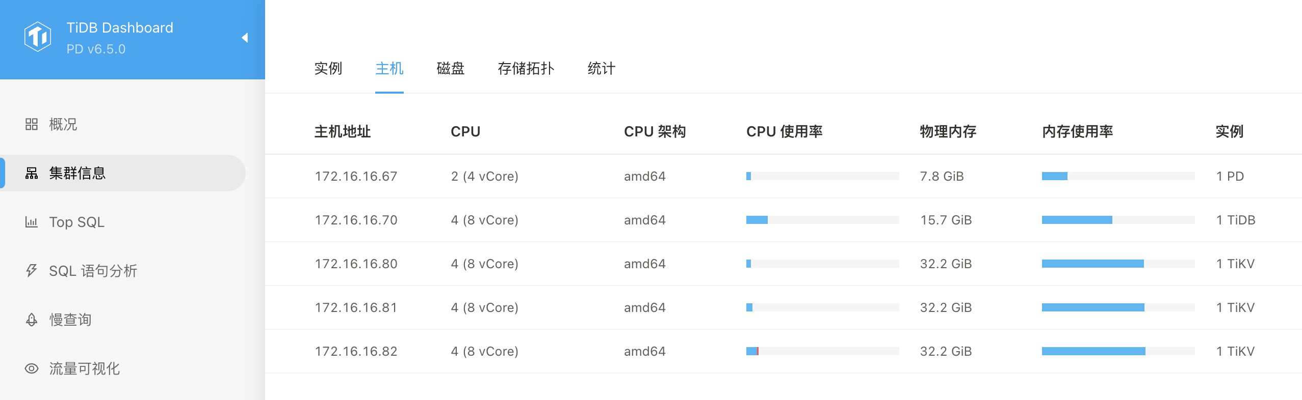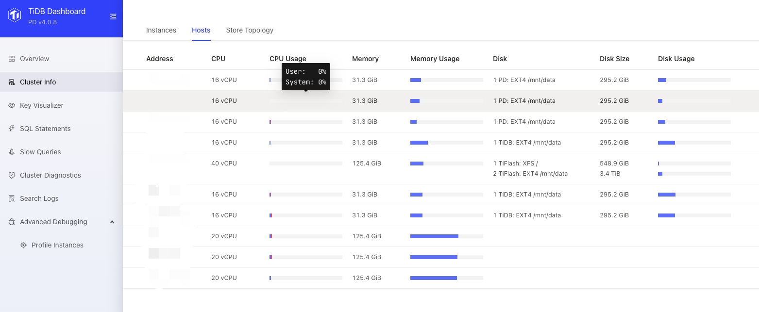 TiDB Dashboard ——>集群信息 (Cluster Info) ——>主机(Hosts)
