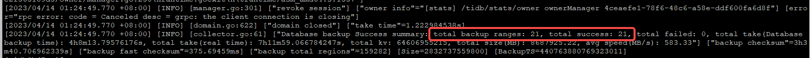 大佬们这个br备份结尾这个日志total backup ranges: 21, total success: 21, total failed: 0