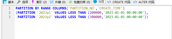 (PARTITION 2023p1 VALUES LESS THAN (200000,‘2023-01-01’),