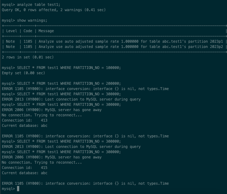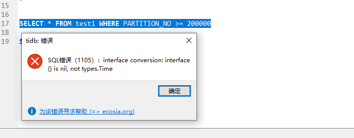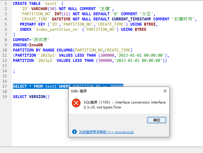 分区值为200000,查询结果等于200000都会报错,是什么原因?