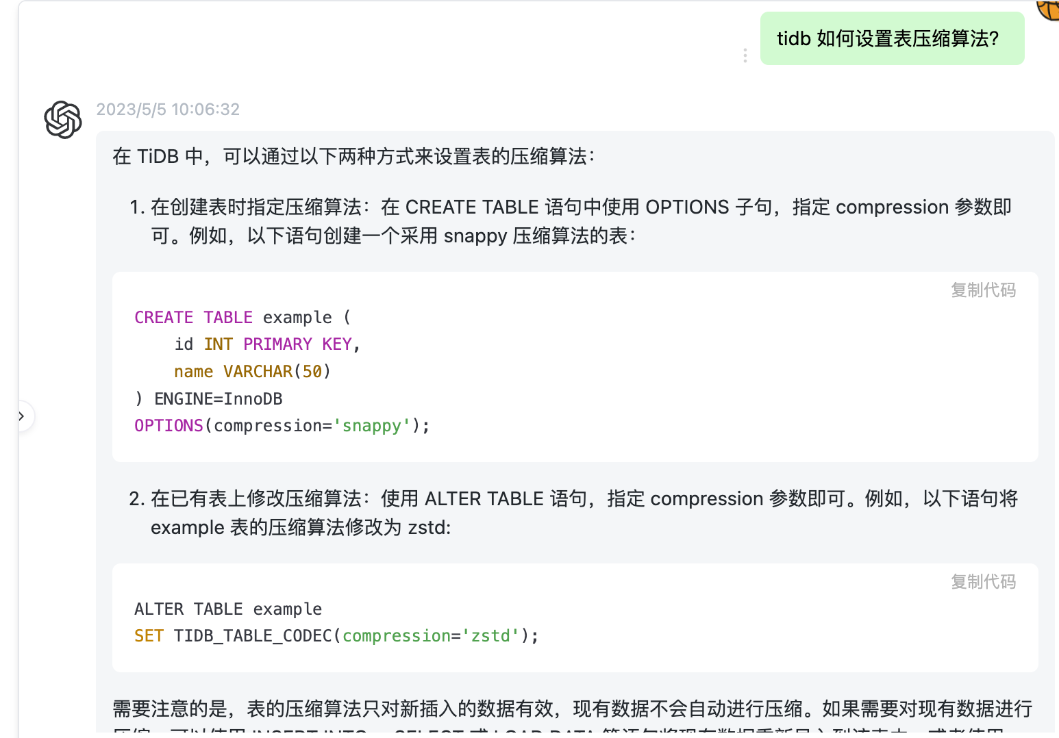 TiDB如何设置表压缩算法