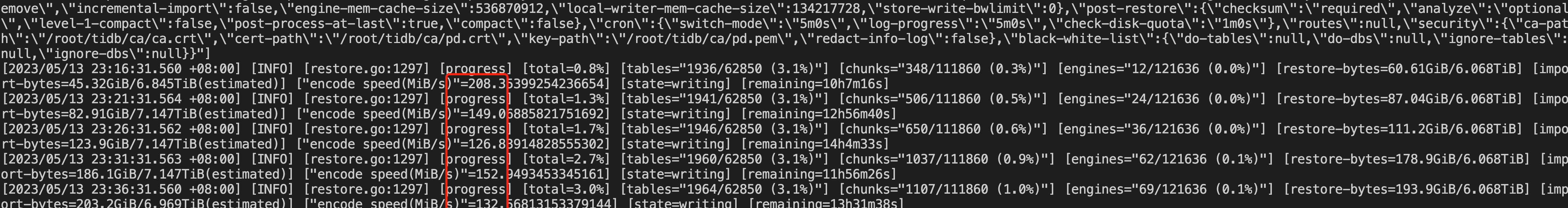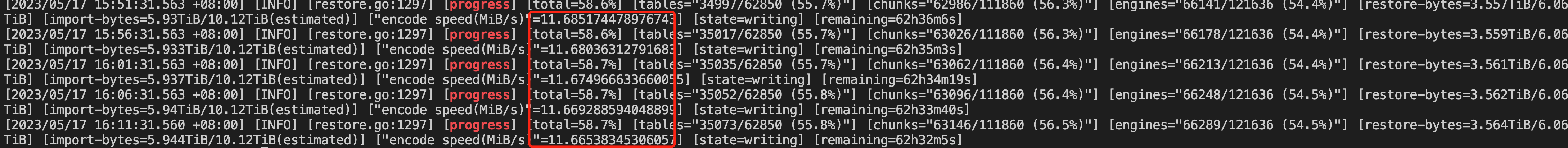 我用的都是local模式,也慢啊,还有好些问题: 比如用local模式导完需要analyze table 一个不足百W的表,需要2个多小时才能分析完,也开了fast analyze,好像没什么用(tidb5.4.3)。