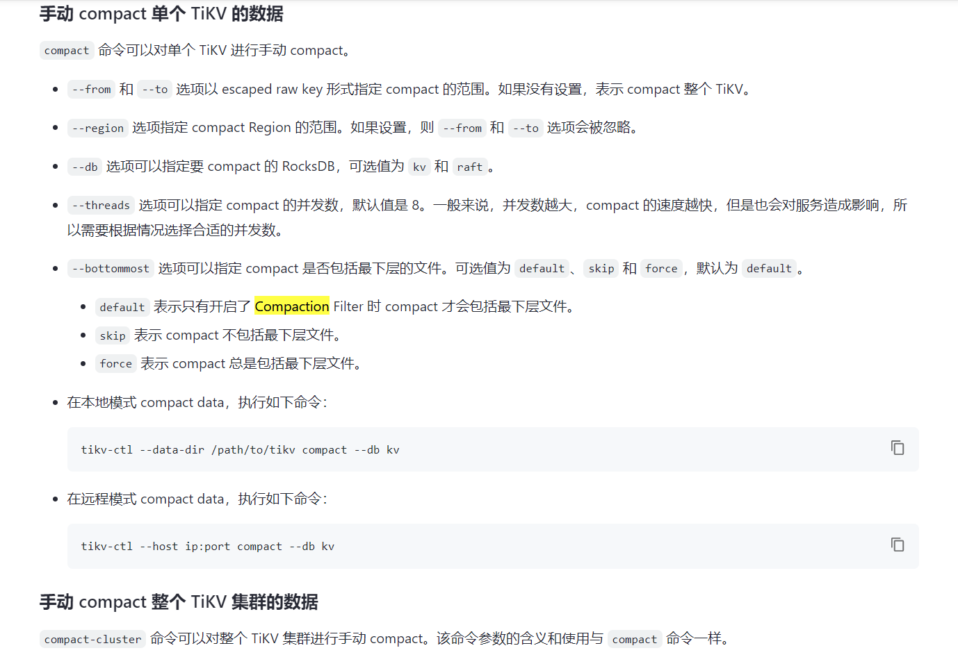 https://docs.pingcap.com/zh/tidb/dev/tikv-control#手动-compact-单个-tikv-的数据