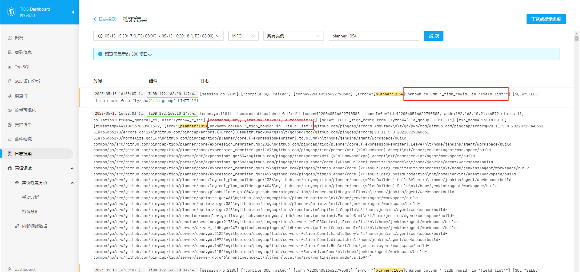 [2023/05/15 16:42:36.386 +08:00] [WARN] [version.go:316] [“select tidb_version() failed, will fallback to ‘select version();’”] [error=“Error 1046: No database selected”]