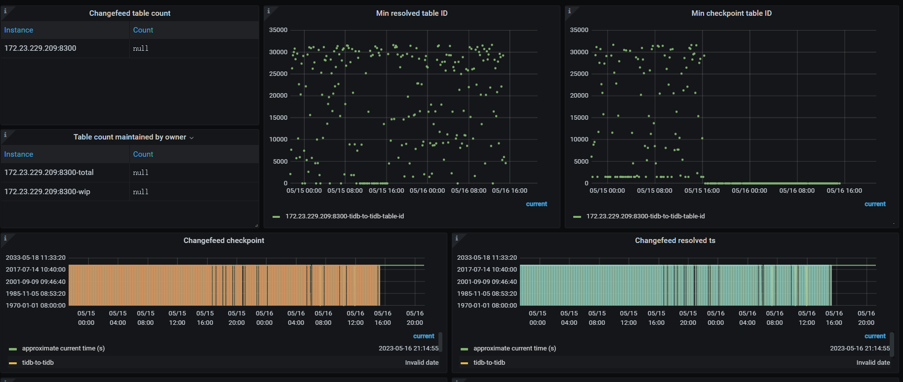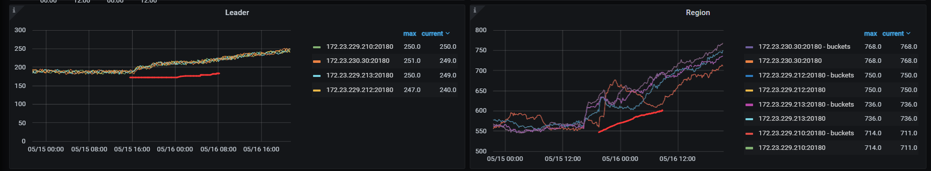上游tidb 5月15号16点左右update 操作后 ,leader 和region 都增加了很多,