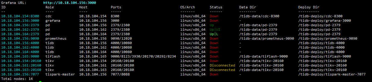 tiup cluster start zdww-tidb -R pd