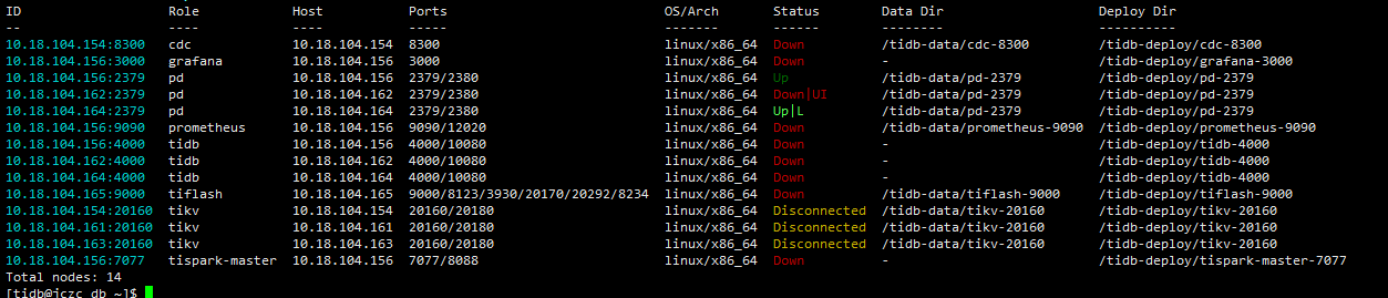 后面我使用tiup cluster restart zdww-tidb直接全部重启了下