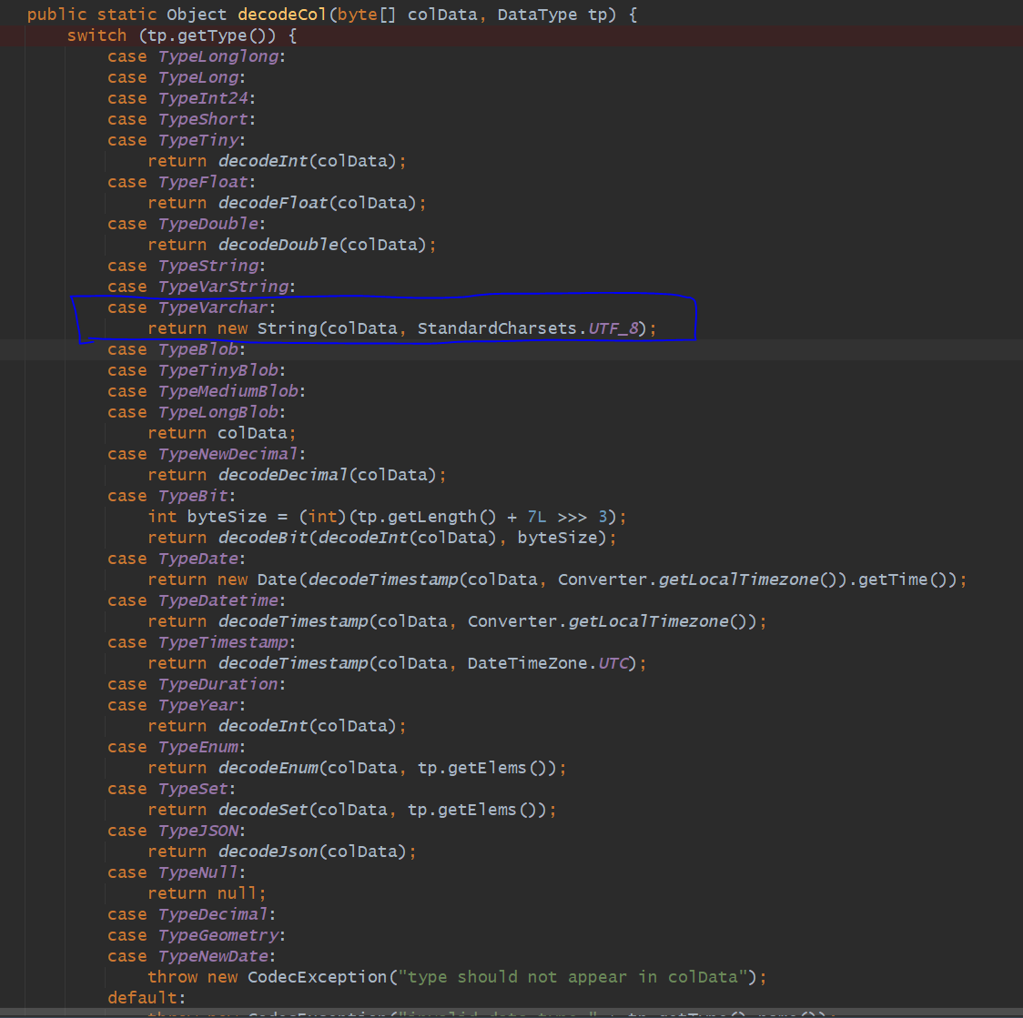 在FlinkCDC中获取varbinary类型的字段值,由于varbinary会被识别为TypeVarchar,导致原本的二进制内容被处理为String,最终出现了字段值错误的问题,请问这个有处理的方法吗?