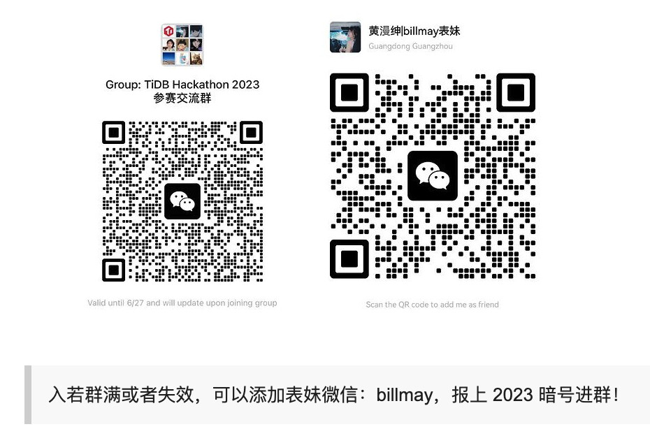 入若群满或者失效,可以添加表妹微信:billmay,报上 2023 暗号进群!