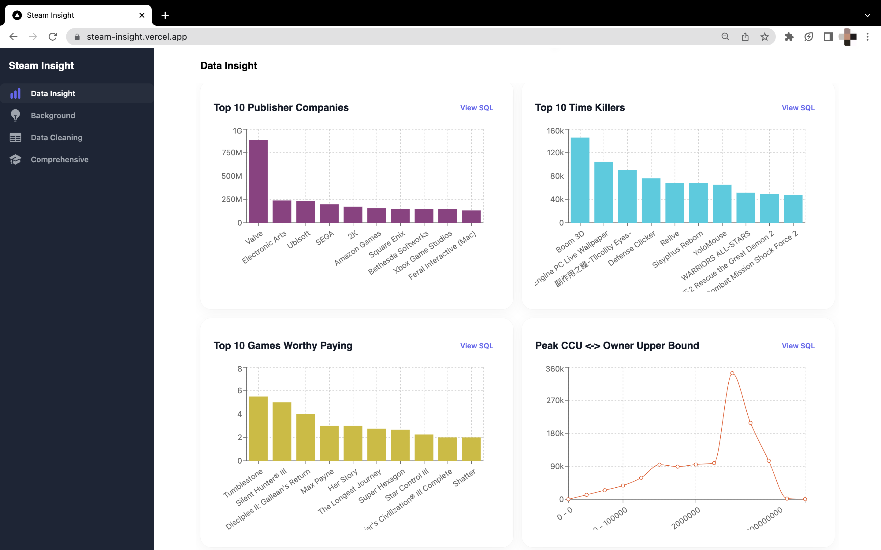 Steam Insight《Steam》游戏洞察 :分析《Steam》游戏(GitHub - pingcap/steam-insight-template: Steam Insight vercel template based on TiDB Cloud Data API:)。