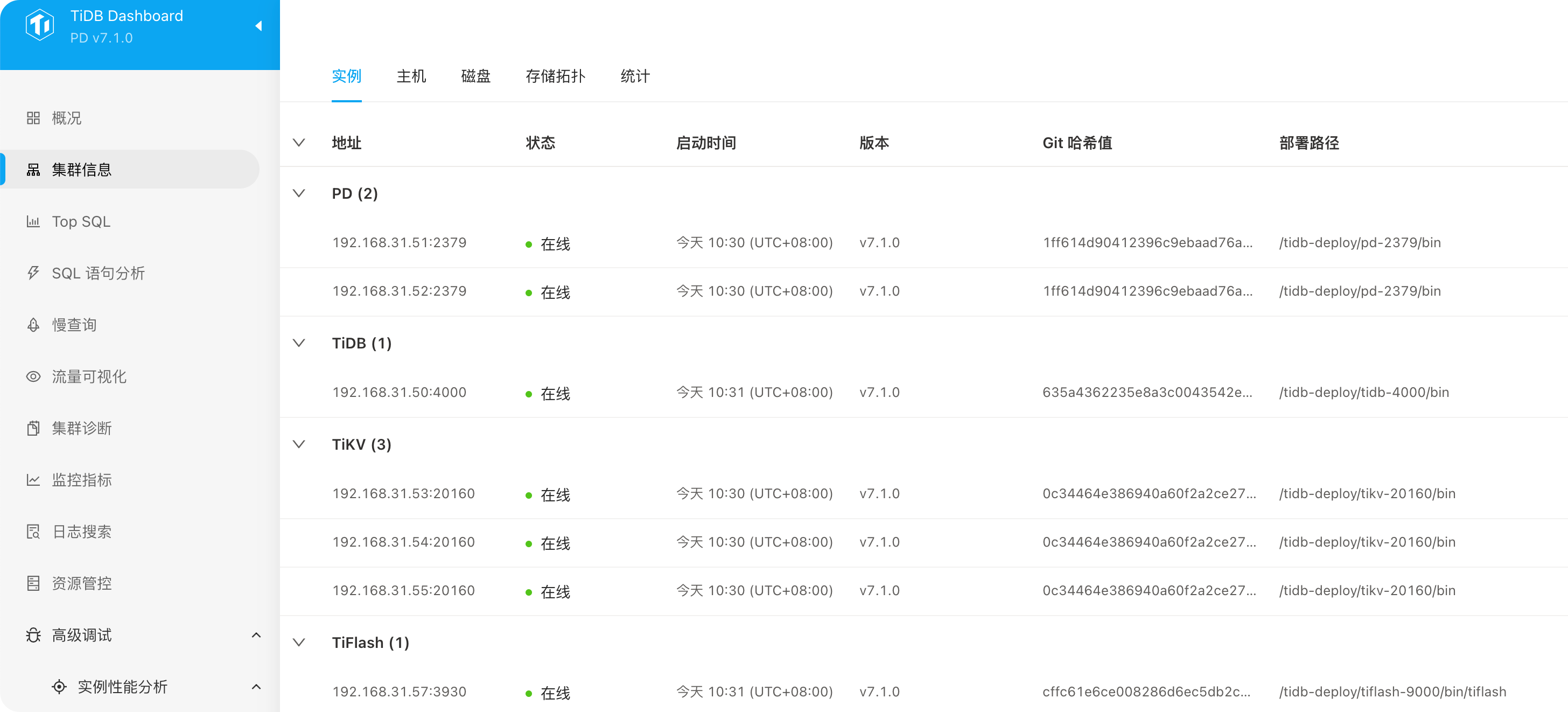 TiDB v7.1.0版本 相关(部署、在线扩容、数据迁移)测试