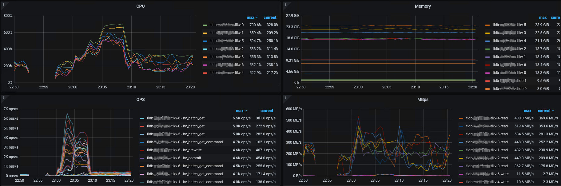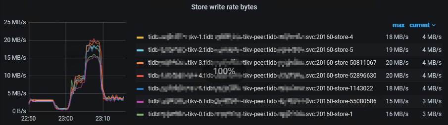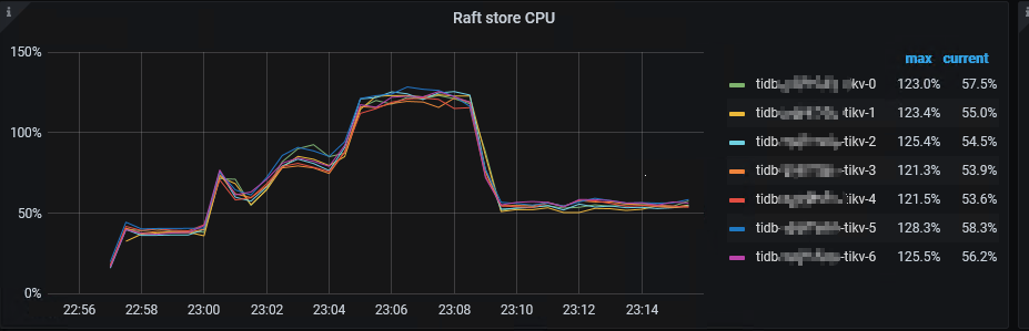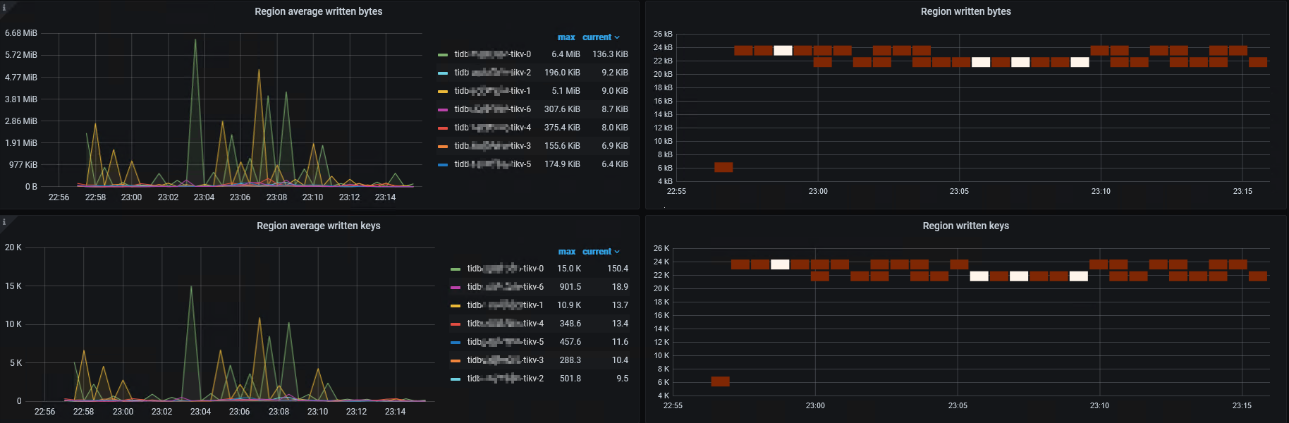 大量写入时,根据https://docs.pingcap.com/zh/tidb/stable/troubleshoot-hot-spot-issues#确定存在热点问题 看Raftstore CPU是正常的(截图在下面),看Store write rate bytes也是正常的(截图在下面),但是看Region written相关的面板觉得可能有点问题(截图在下面),在论坛搜索过但是没看到有介绍Region written相关的面板怎么看的,想确认下是不是存在热点问题