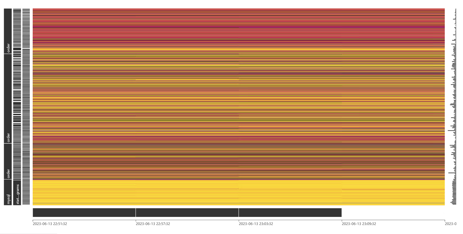 特别是stat…grams这个表,在x轴的分布一直很亮, 是文档中这种明暗交替的加强版。
