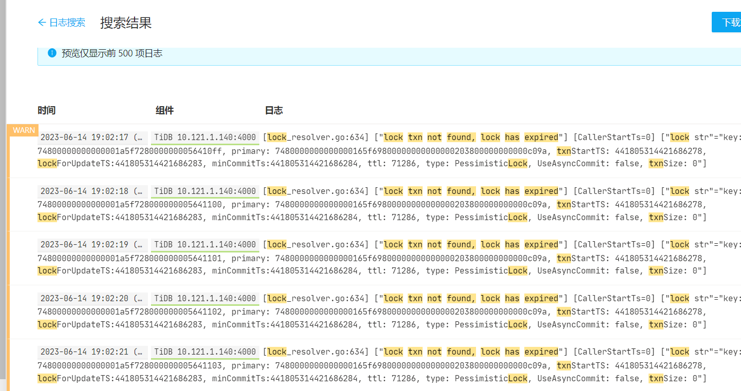 tidb突然连接不上,查看日志发现tidb组件一直在报lock txn not found, lock has expired