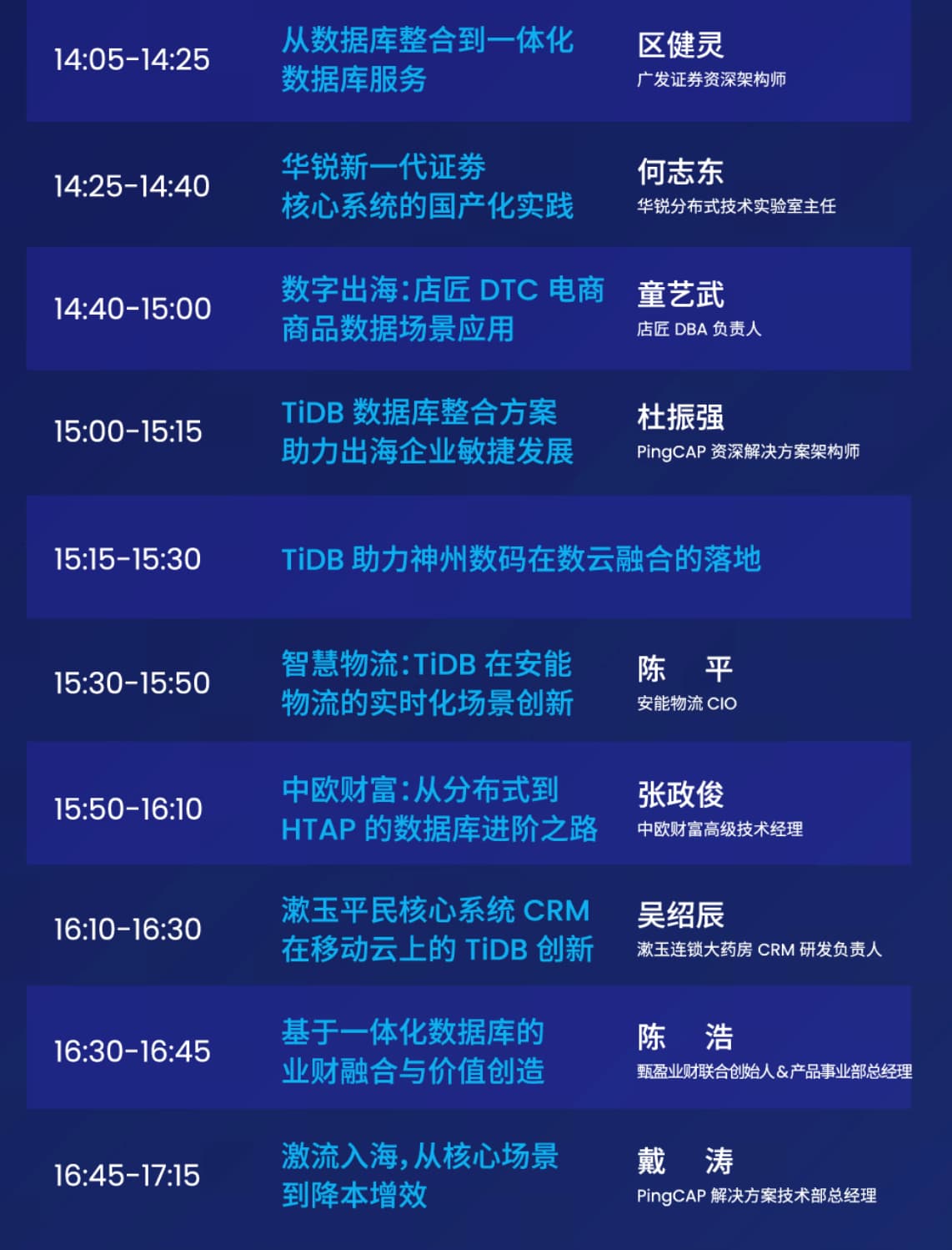 大会线下席位有限,先到先得,同步提供线上直播。报名后请留意【TiDB Club】服务号推送的审核结果,我们将在 2 个工作日内发送通知。