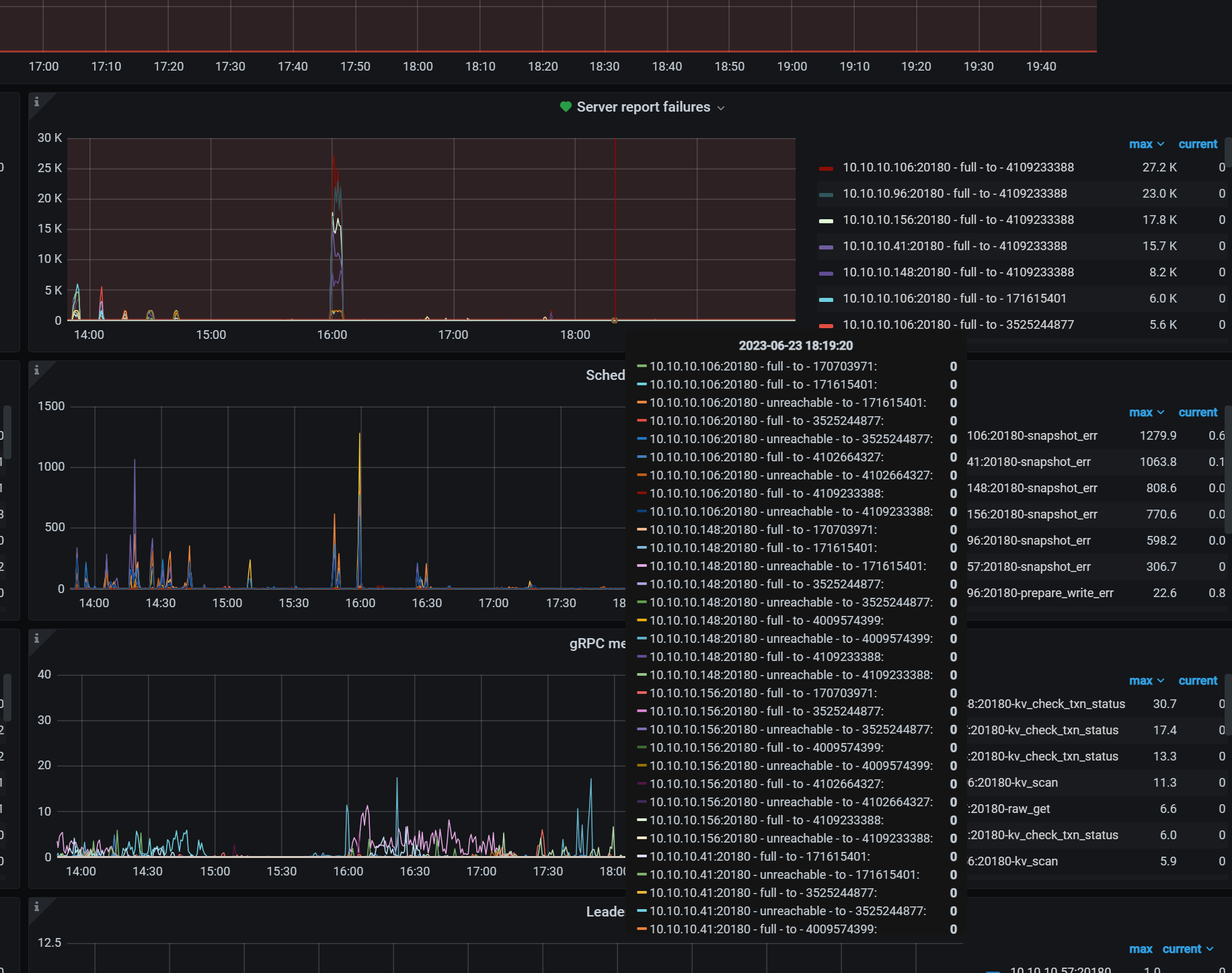 [2023/06/24 13:20:31.651 +08:00] [Error] [peer.rs:5243] [“failed to send extra message”] [err_code=KV:Raftstore:Transport] [err=Transport(Full)] [target=“id: 8903034050 store_id: 3525244877”] [peer_id=8903034049] [region_id=8903034047] [type=MsgHibernateResponse]